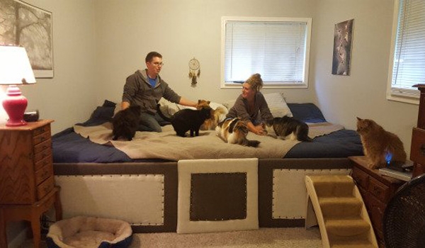 A Couple Built a Gigantic 75 Sq Ft Bed for Their Seven Cats and Dogs