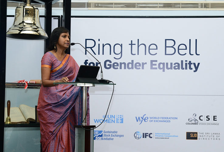 Ms. Shiromal Cooray, the Chairperson of the Sri Lanka Institute of Directors thanked IFC and CSE for partnering SLID in what is a symbolic bell-ringing commemoration and stated “Throughout the year, we will be conducting a series of programs focused on empowerment for women in the workplace with special focus given to Women on Boards.
