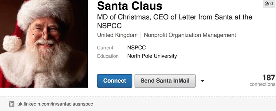 As part of the NSPCC's 'Letter from Santa' , in which people worldwide can request a personalised letter from Saint Nick for a suggested donation of £5, Santa Claus has signed up to LinkedIn in search of copywriting support.