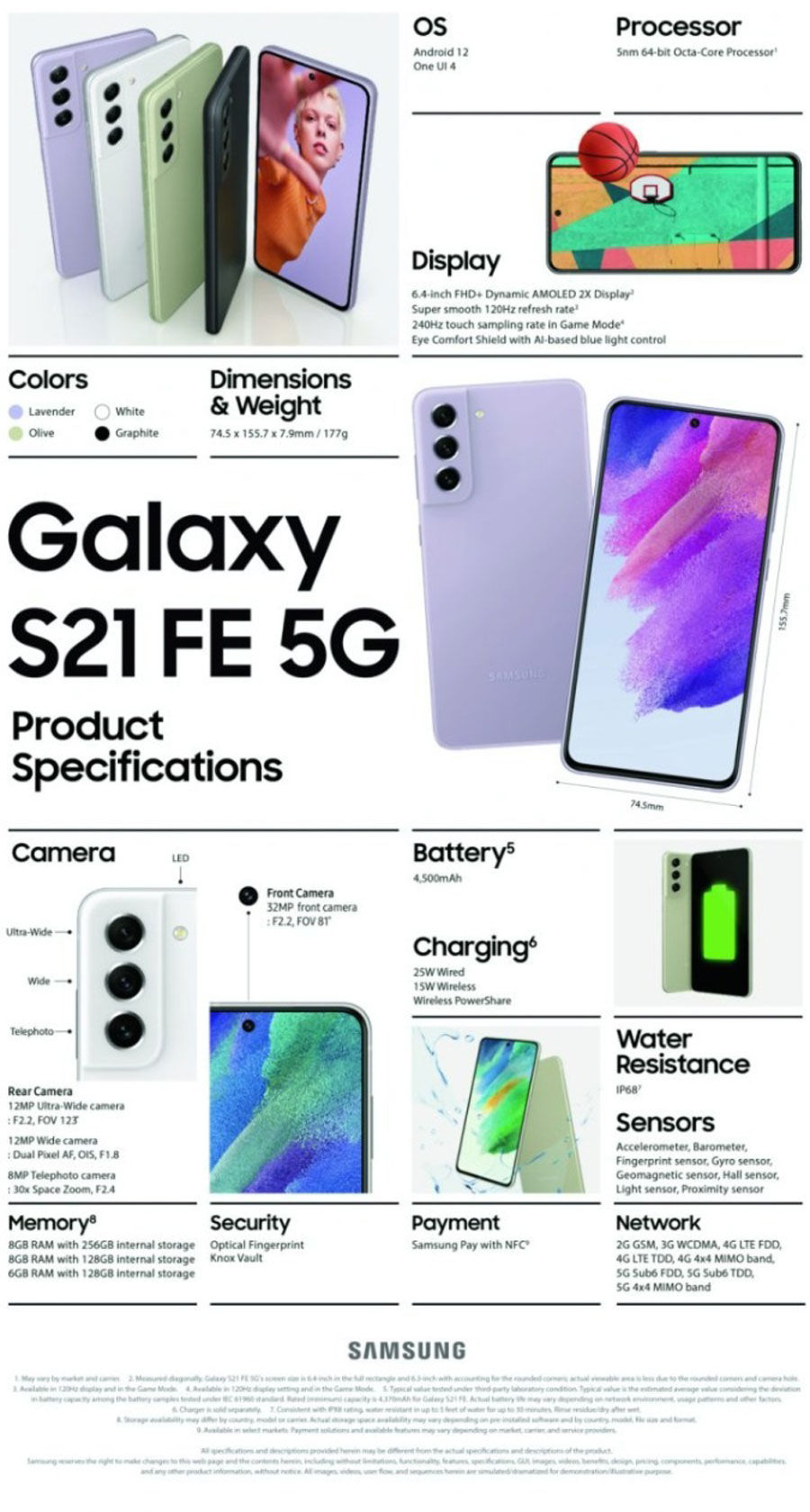 S21 FE 5G ( 8+128GB) : Rs.174,999 (Olive, Lavender, Graphite )